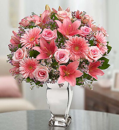 One look at this truly original arrangement of pink roses, lilies, Gerbera daisies and more will leave her smiling brighter than the vase it arrives in! We think it’s a brilliant gift idea for birthdays, anniversaries or any day you want to put that special someone in the spotlight.